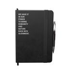 The Preston hardcover journal & pen combo is the intersection of eco-conscious and elevated style. This A5 size, non-refillable perfect-bound journal is made of 21% recycled post-consumer polyester/14% recylced post consumer PU and 65% PU. It contains 192 pages of lined, perforated, ivory colored, 100% recycled paper. There’s a handy integrated pen loop to hold onto the included color matching Kane ballpoint pen. Decoration methods include debossing or laser touch centered on the front. Comes in a cardboard sleeve. (Inner paper dimension: 5 ½” x 8”)