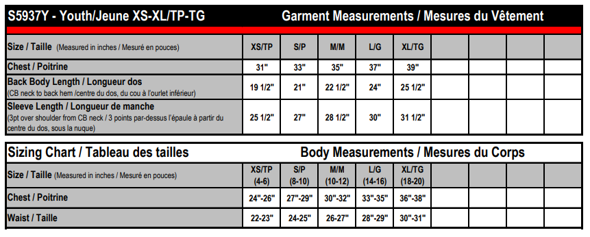| Chest | 24-26 | 27-29 | 30-32 | 33-35 | 36-38 |