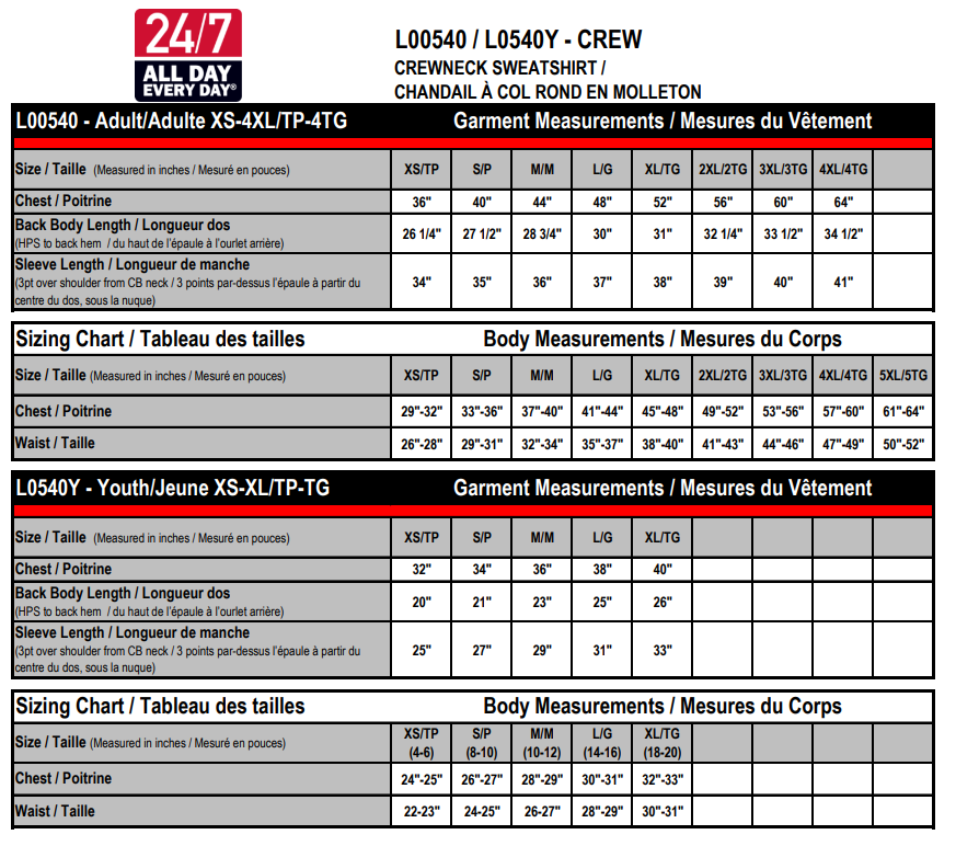 CSW 24/7 CF - Youth Crewneck Pullover Sweatshirt L0540Y
