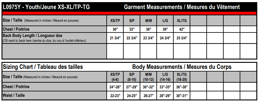 • Sizing Details