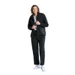 115 gsm – 3.4 oz./yd2 – 6 oz./lin. yd 100% polyester dobby with wind and water resistant finish. Mesh lined upper, lower leg lined. Elasticized waistband with adjustable drawcord. Reflective trim on back of leg, side seam pockets. Hook and loop tape at hem vent for easy hemming. YKK zippers.