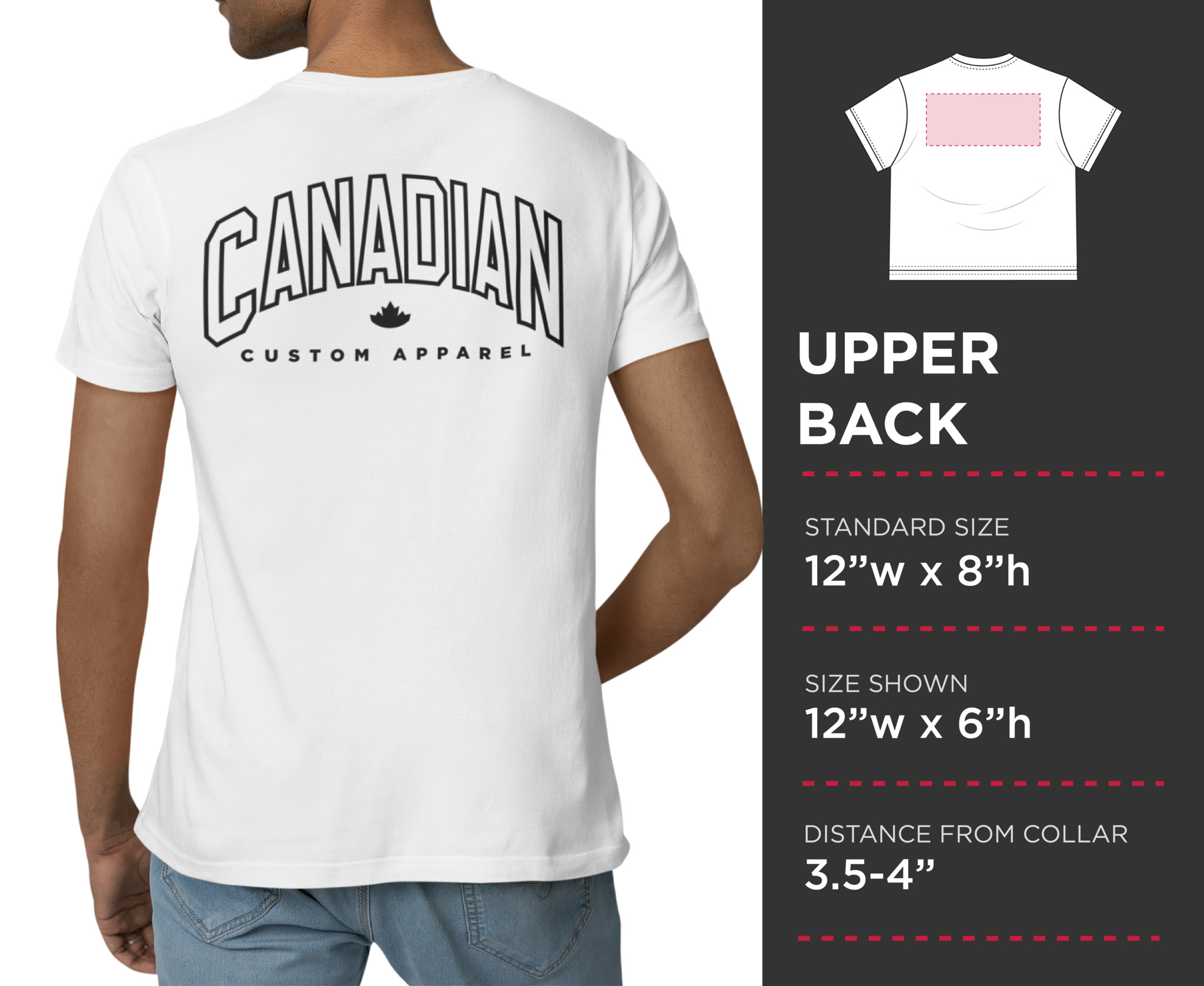 Like the left chest, this print location is best suited for simpler designs. As with other areas, the size and placement should be tailored to your specific logo or artwork.
