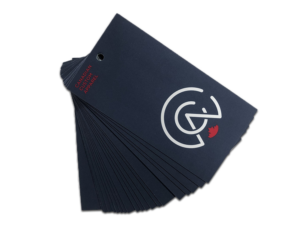 Hang tags are tags attached to a garment that includes information about the manufacturer or designer, the fabric or material used, care instructions and sometimes the price. Design your own in our online designer! Available in bundles of 100, 500 and 1000.
